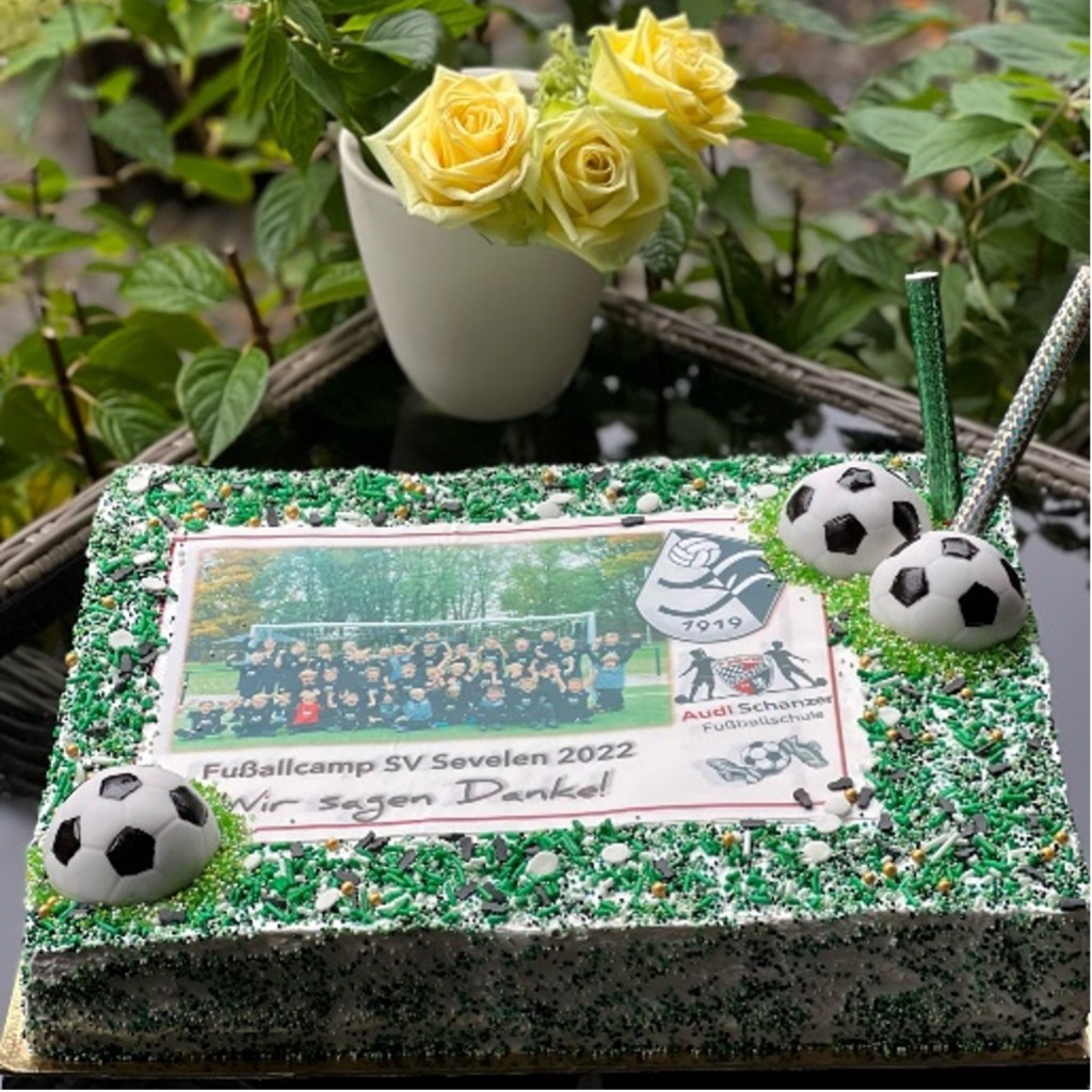 So ging das Fußballcamp gemütlich bei Kuchen, Muffins, Kaffee und Kaltgetränken zu Ende, während die Kids schon wieder den Fußballplatz stürmten.