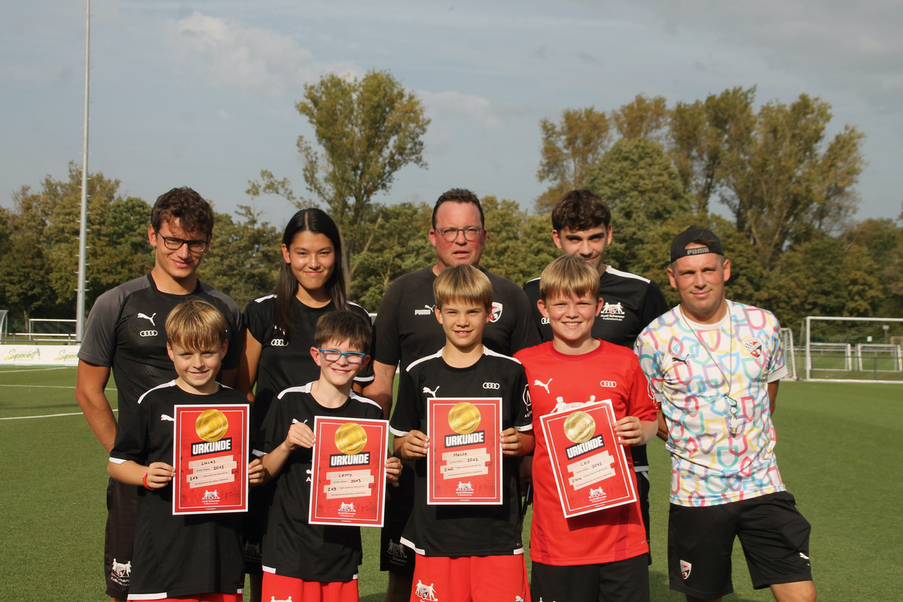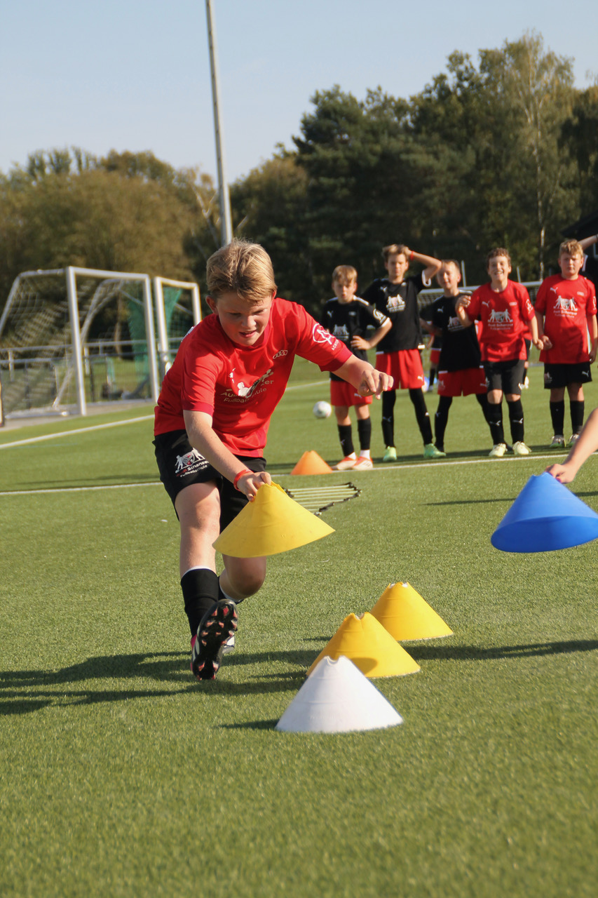 Die Trainingseinheiten bestanden aus unterschiedlichen Spielformen, Stationstraining, Geschwindigkeitsmessungen und Zielschießen sowie dem Erlangen des Audi Schanzer Fußballabzeichen. Täglich verdienten sich die Kinder Urkunden, die sie stolz in Erinnerung behalten werden. Wer schon in den Vorjahren dabei war, konnte dadurch auch die persönliche Entwicklung nachvollziehen.